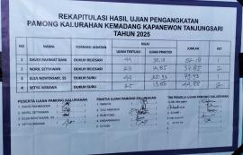 Inilah hasil akhir dari ujian tertulis dan ujian praktik komputer yang diikuti oleh empat orang calon. Sesuai dengan hasil koreksi oleh tim penguji yang terdiri dari unsur pamong, lembaga dan tokoh masyarakat yang dituangkan dalam berita acara No. 1048/BA/IX/2025 tentang Hasil Ujian Calon Pamong Kalurahan (Dukuh Rejosari dan Dukuh Suru ) Kalurahan Kemadang Kapenewon Tanjungsari Kabupaten Gunungkidul. Dengan raihan nilai tertinggi dari nilai ujian teori 50%, ujian praktek 45%, dan nilai pengalaman kerja sebesar 5% kali ini dimenangkan oleh David Rahmat Dani untuk Dukuh Rejosari dengan total nilai : 82,18 Dan Duduh Suru di Menangkan Oleh Elsa Novitasari, S.S dengan total nilai : 79,93