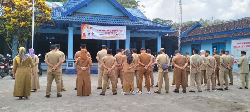 Apel pagi berlangsung dengan tertib dan lancar, kemudian dilanjutkan dengan aktivitas pelayanan dan pekerjaan masing-masing bidang di lingkungan Kalurahan Kemadang.